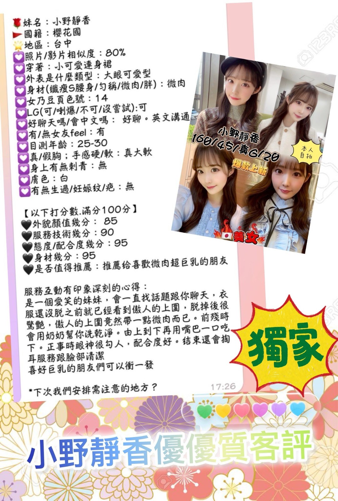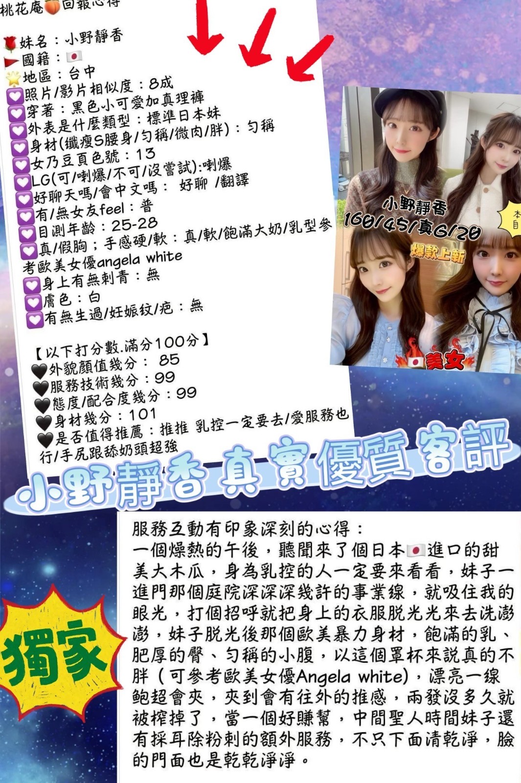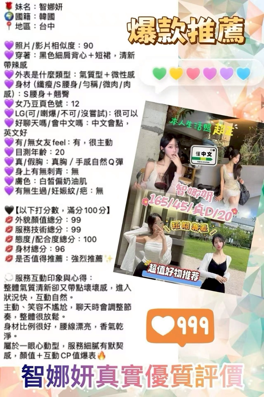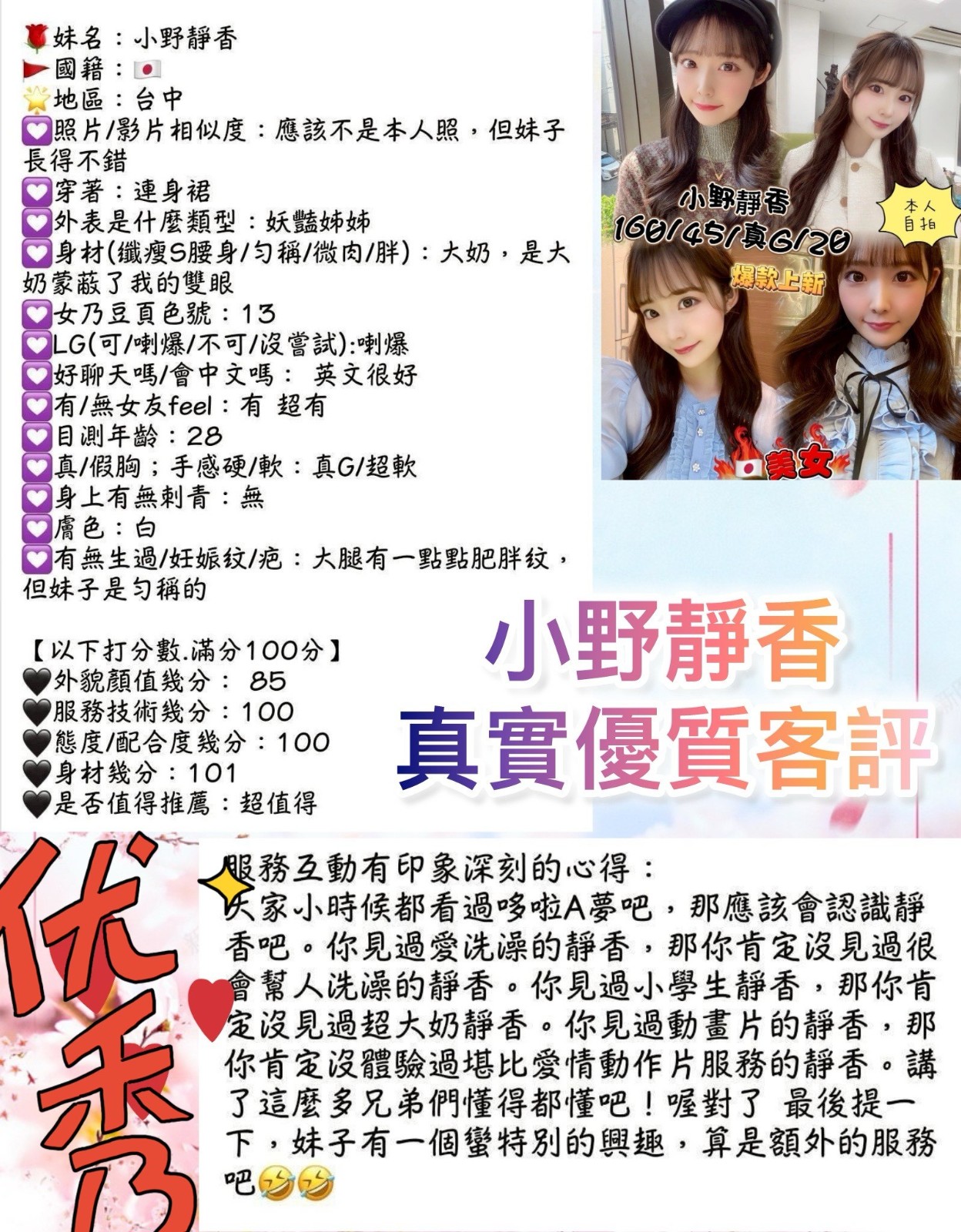 顏質好.身材好.態度好.配合度高    Review by 朱**